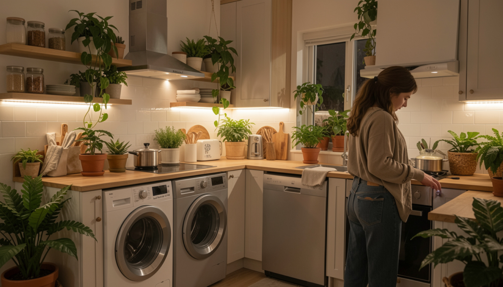 In the kitchen, cooking can be a high-energy activity. To cook sustainably, match your pot size to the burner size to prevent heat loss and always use lids to trap heat and speed up cooking times. If you’re using the oven, try to cook multiple items at once to maximize the energy used. Small appliances like air fryers or microwaves are often much more energy-efficient than a full-sized oven for smaller meals. Once the sun goes down, switch to “task lighting”—using a small lamp for reading rather than lighting an entire room—and ensure all your bulbs are high-efficiency LEDs.